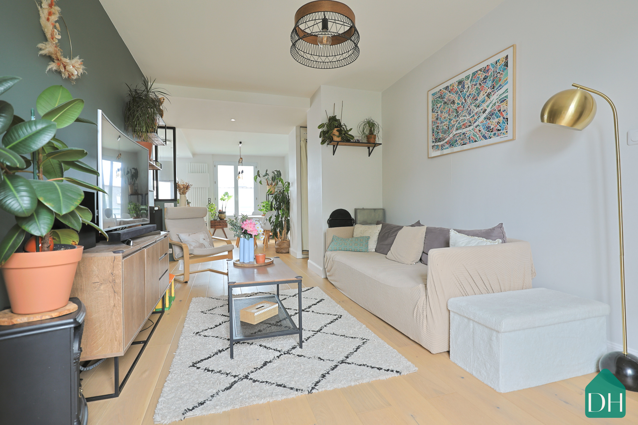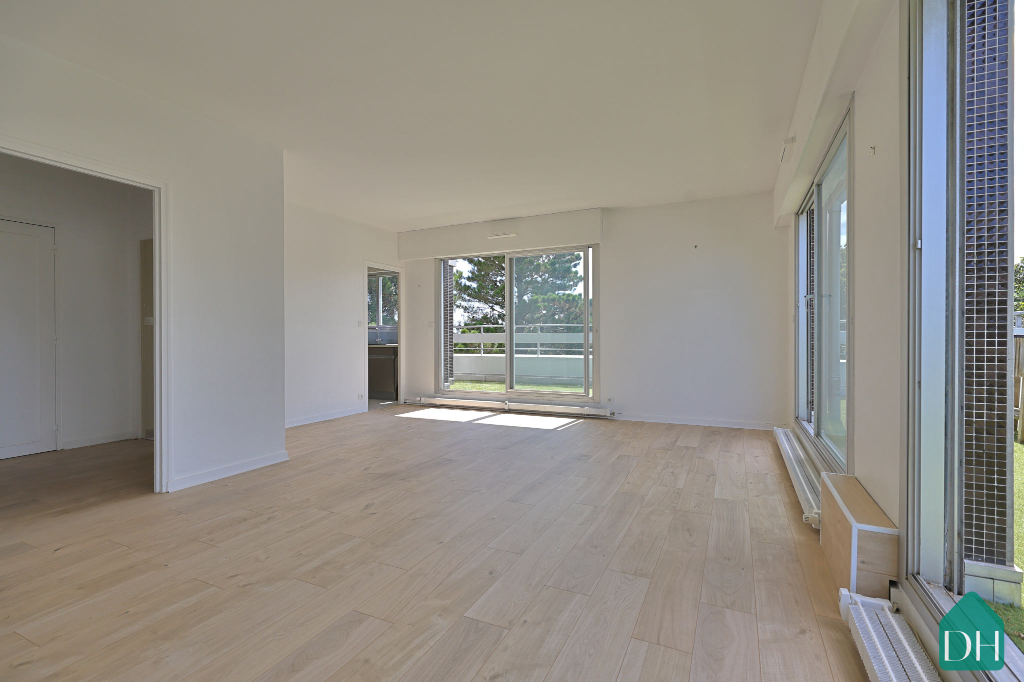 Belle pièce de vie et lumineuse, ouverte sur l’extérieur grâce à une baie vitrée exposée plein sud