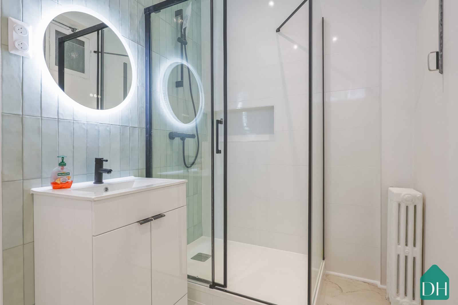 Une salle de douche entièrement refaite à neuf, élégante et moderne