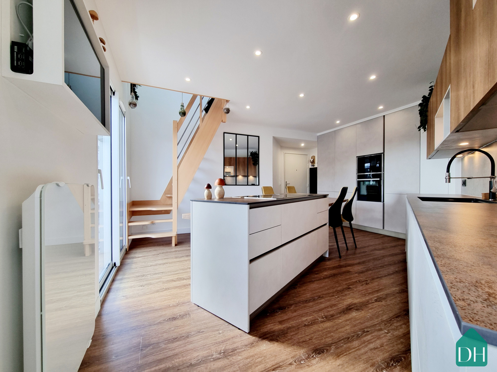- Une cuisine américaine aménagée et équipée, proposant des matériaux et des équipements de qualité
