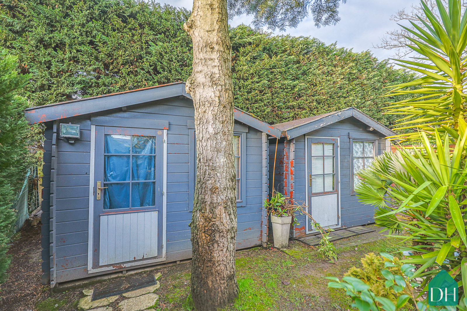 À l’extérieur, deux cabanons de rangement viennent compléter l’ensemble et renforcer la fonctionnalité du bien.
