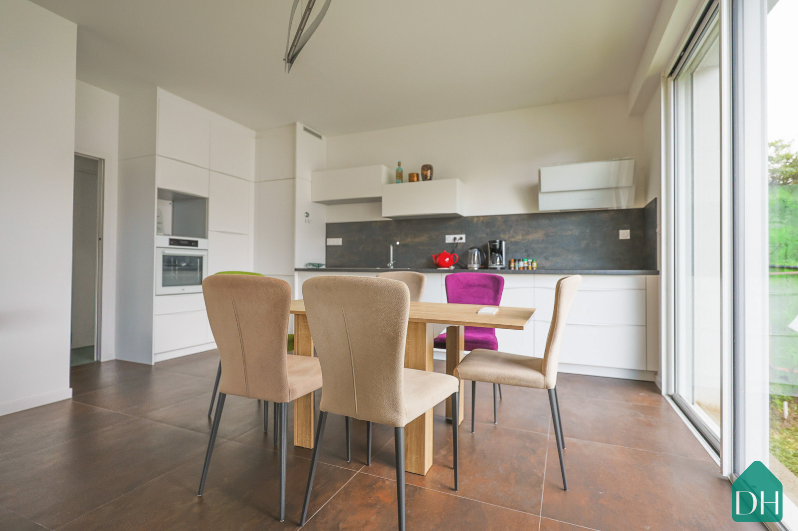 Édifiée sur une parcelle d’environ 200 m², cette maison conforme à la norme RT 2012 séduit par la qualité de sa conception, ses volumes généreux et sa très belle luminosité, grâce à de larges baies vitrées exposées plein sud, ouvrant sur les espaces verts.