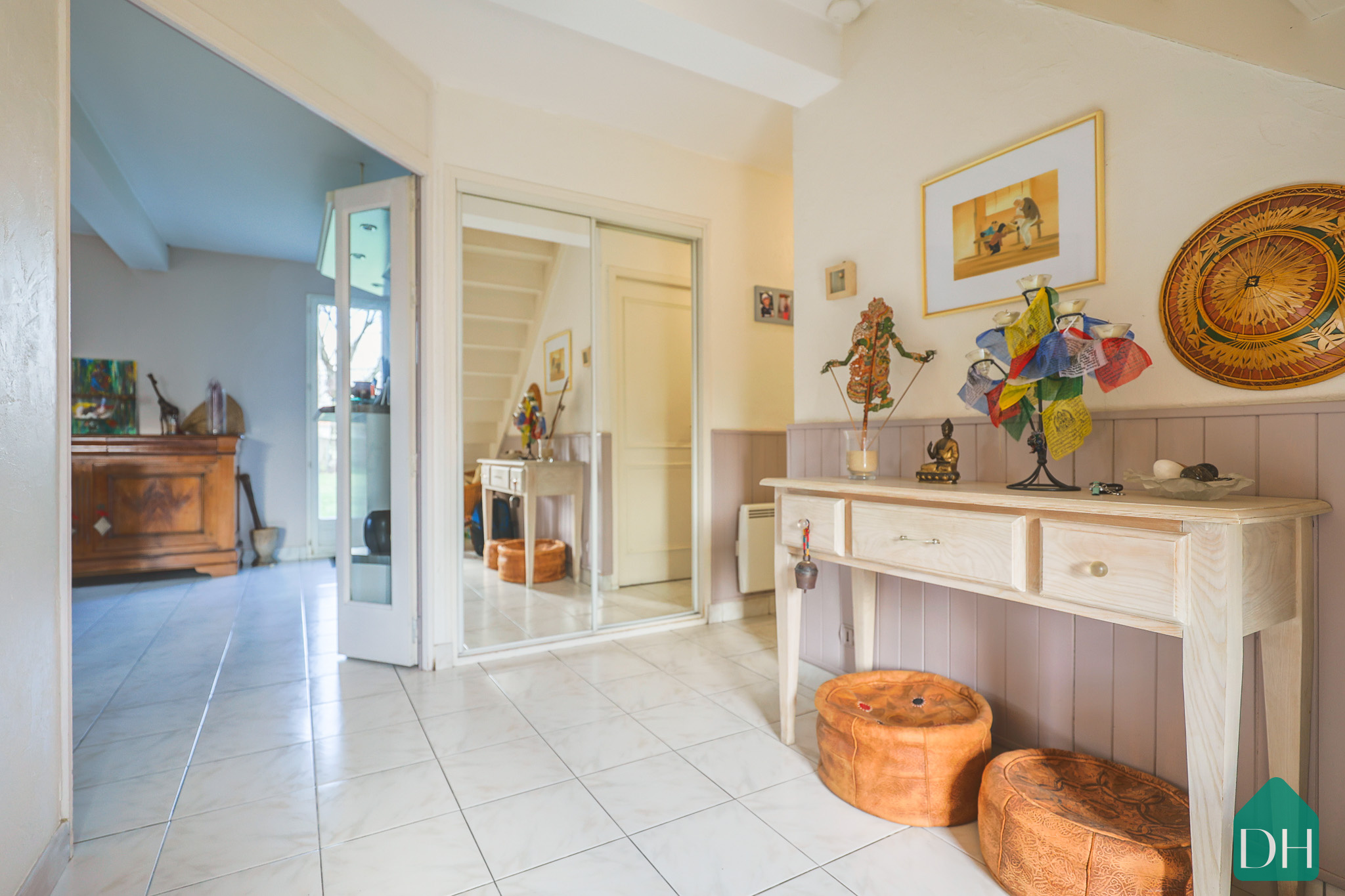 Édifiée sur une parcelle arborée et entièrement close de 594 m², sans vis-à-vis, cette maison séduit par la générosité de ses espaces, sa circulation fluide et ses pièces de vie lumineuses, bénéficiant de plusieurs expositions.