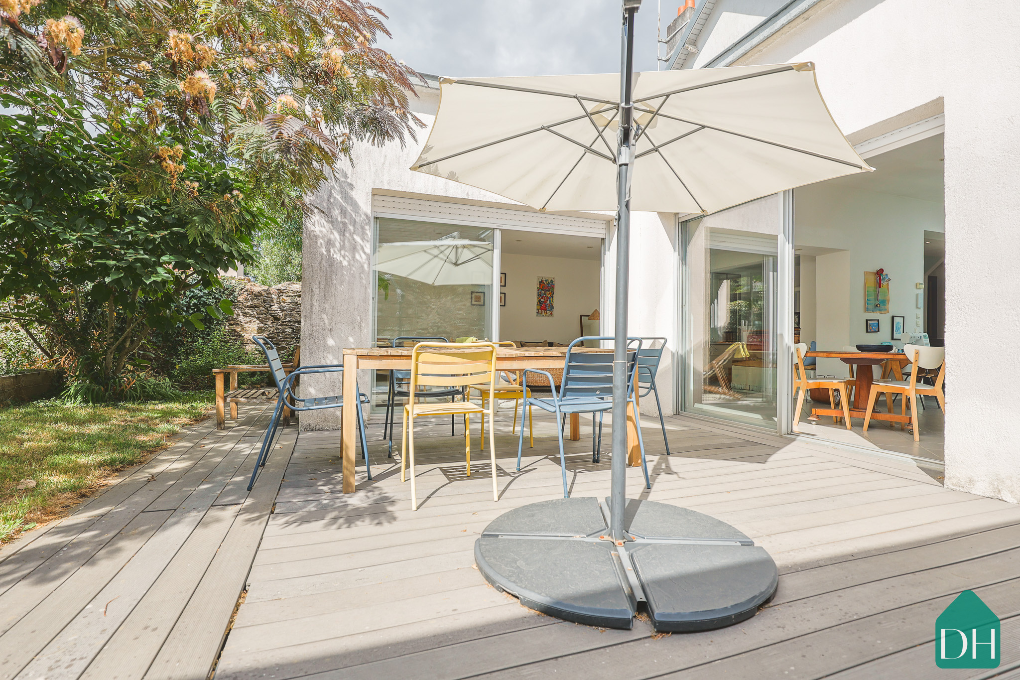 Dès l’entrée, vous serez séduit par son vaste espace de vie lumineux , ouvert sur une terrasse et un jardin paysagé clos.