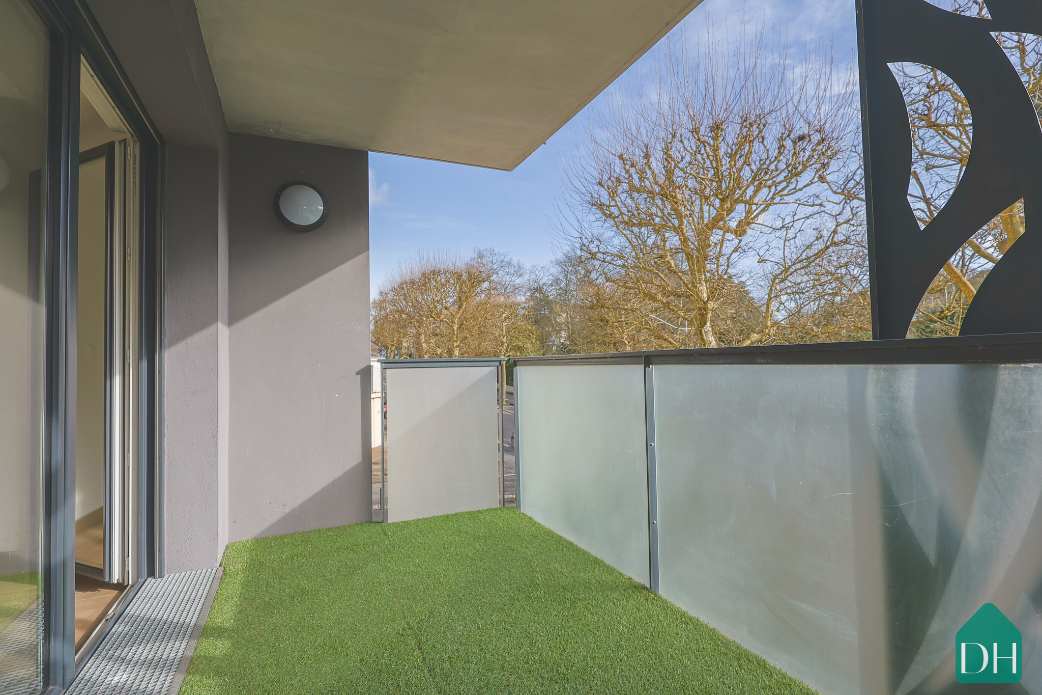 Depuis la pièce de vie, vous accédez directement au balcon exposé sud-est , véritable prolongement extérieur avec vue dégagée sur le parc.